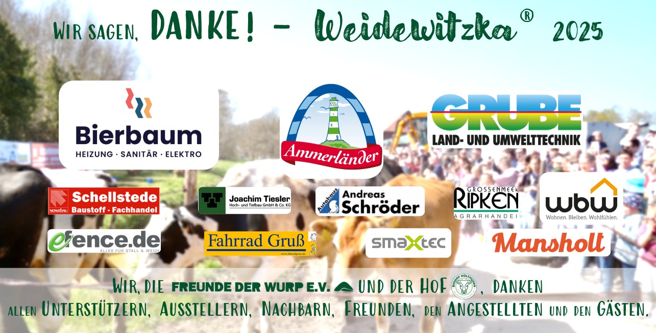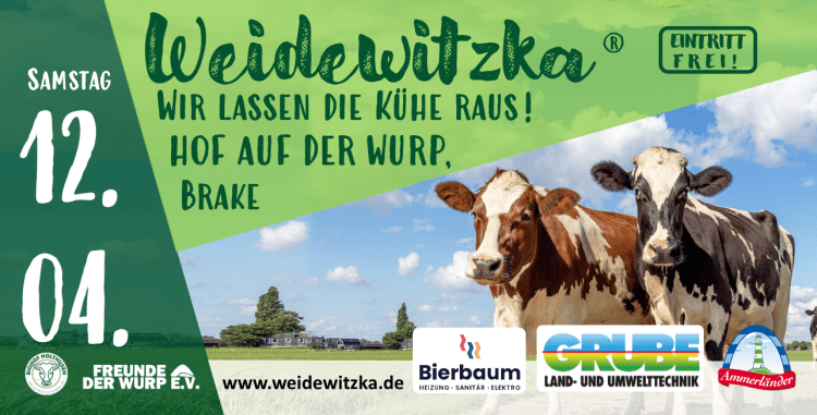 „Drei, Zwei, Eins … WeidewitZka – Wir lassen die Kühe raus!“ wird es am 12. April um 11 und 13 Uhr heißen, wenn die 200 Milchkühe das erste Mal im Jahr auf die Wiese dürfen. Die Vorfreude auf das saftige Grün kann man den Tieren dabei förmlich ansehen, mit Freudesprüngen und rasantem Tempo stürmen die Kühe dann über den Wirtschaftsweg, entlang der Zuschauer auf die Weide. Diese Freude mit euch zu teilen, ist unsere Mission. Daher bringen wir, die „Freunde der Wurp e. V.“ die in vielen Regionen Süddeutschlands bereits fest verankert Tradition des Weideaustriebs zu uns nach Norddeutschland.